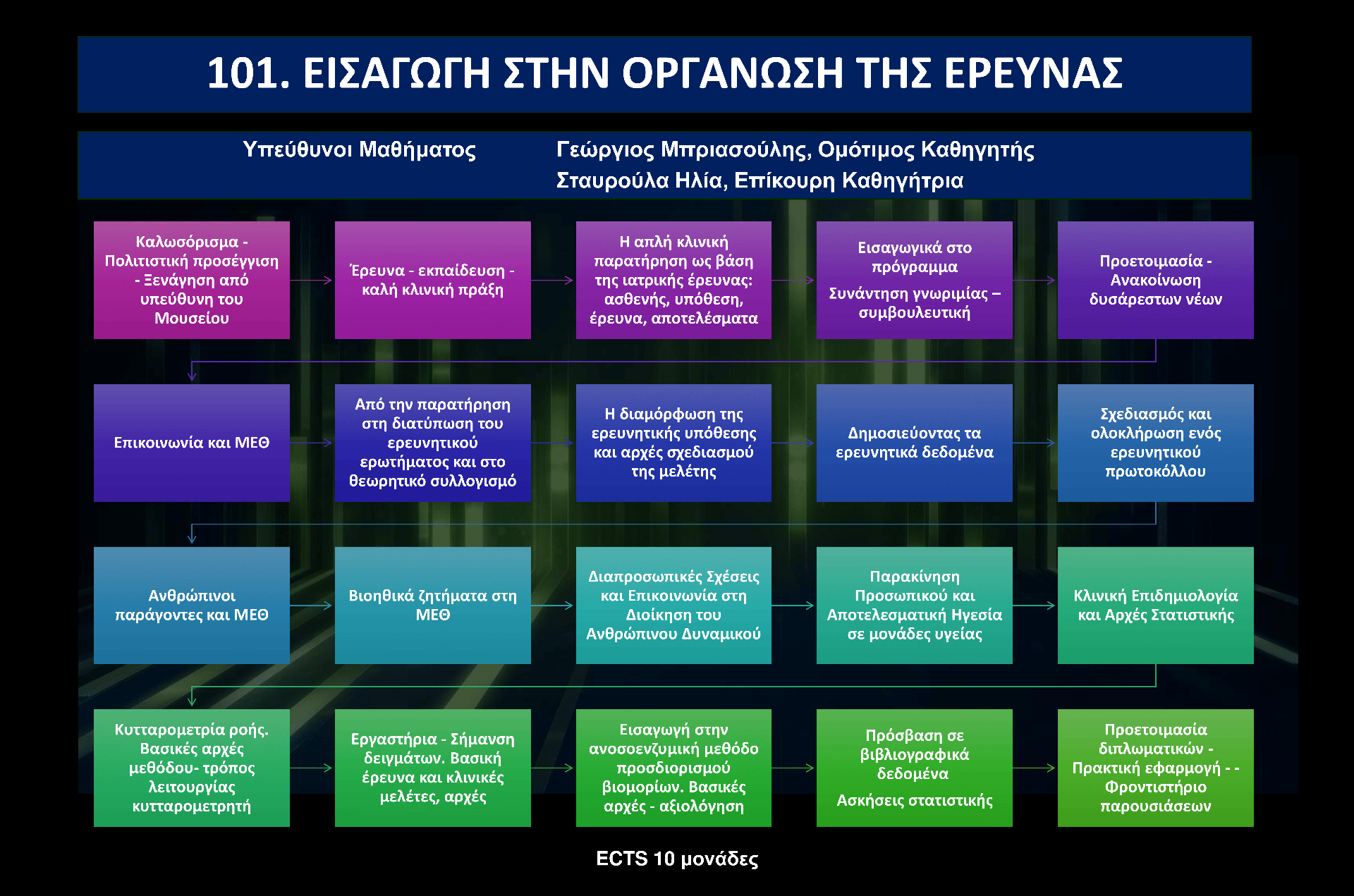 Ακολουθήστε τη σελίδα προς τα κάτω ώστε να ενημερωθείτε για την αναλυτική δομή των μαθημάτων του προγράμματος (EICN 101-303)